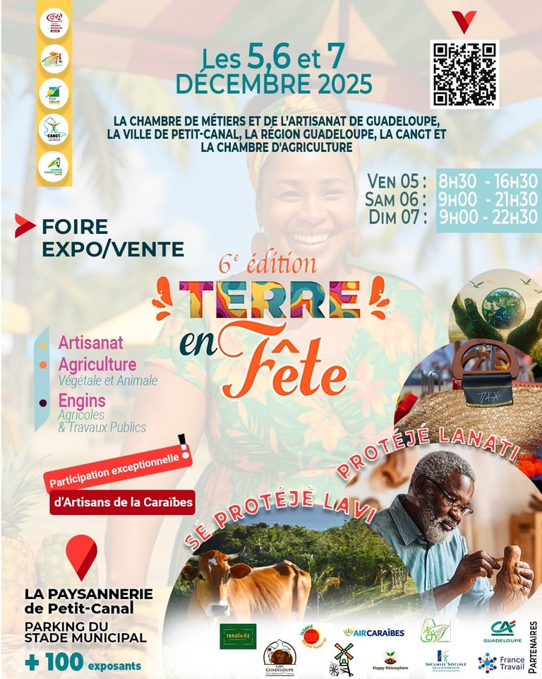 L'année 2025 se termine en beauté pour Lolo Péyi ! Après avoir célébré le patrimoine à Basse-Terre, nous sommes fiers de participer à un autre rendez-vous majeur de l'agenda guadeloupéen : "Terre en Fête". Organisé par la Chambre de Métiers et de l'Artisanat de Région Guadeloupe (CMAR Guadeloupe) en partenariat avec la Ville de Petit-Canal, cet événement est bien plus qu'une simple foire. C'est une véritable déclaration d'amour à notre terre, à l'excellence de nos artisans et à la vitalité de notre agriculture.