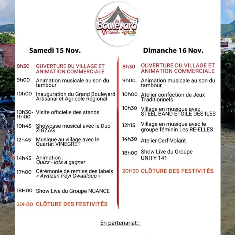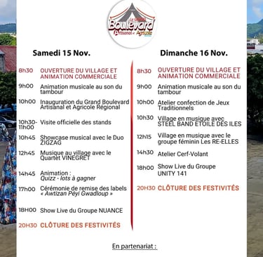 Participez à l'événement majeur organisé par la Chambre de Métiers et de l'Artisanat de Guadeloupe, en partenariat avec la région et la ville de Basse-Terre, pour promouvoir le savoir-faire local des artisans et agriculteurs.